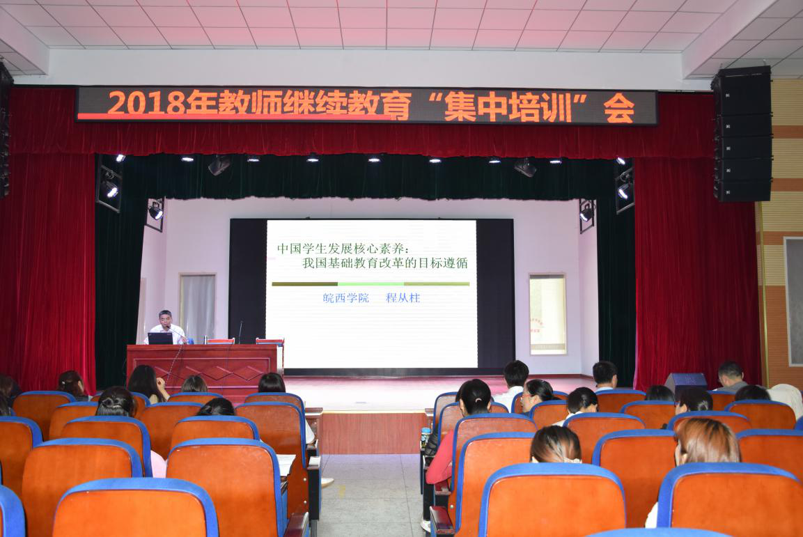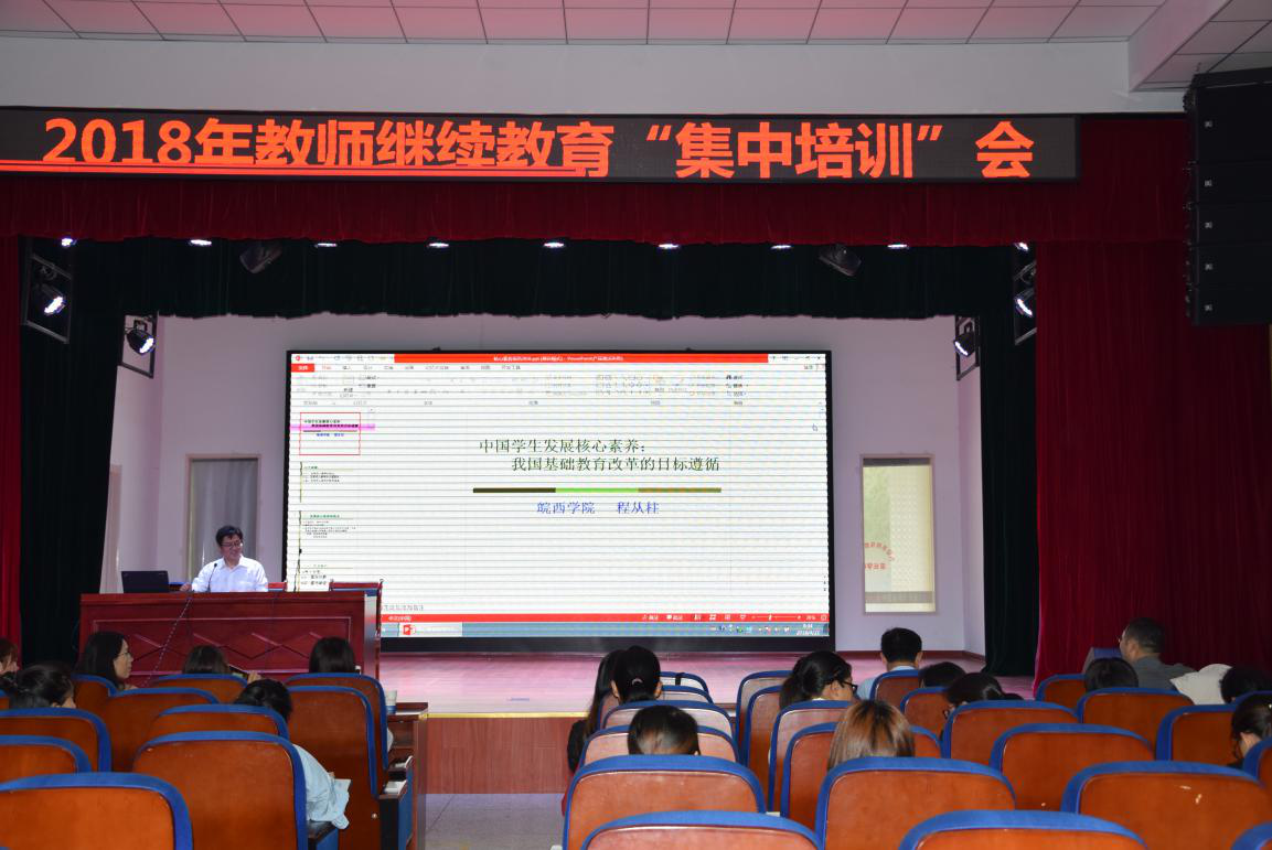 会上,程教授做了题为《中国学生发展核心素养:我国基础教育改革的目标遵循》的专场培训。程教授分别从发展学生核心素养的提出、发展学生核心素养的内容体系、发展学生核心素养的教育要求三个方面系统地进行阐述讲解。整场培训,思路清晰、语言幽默,用丰富多彩的生活案例,将抽象的理论知识深入浅出的表达出来,令所有教师在2个半小时的集中学习中,收获颇丰。