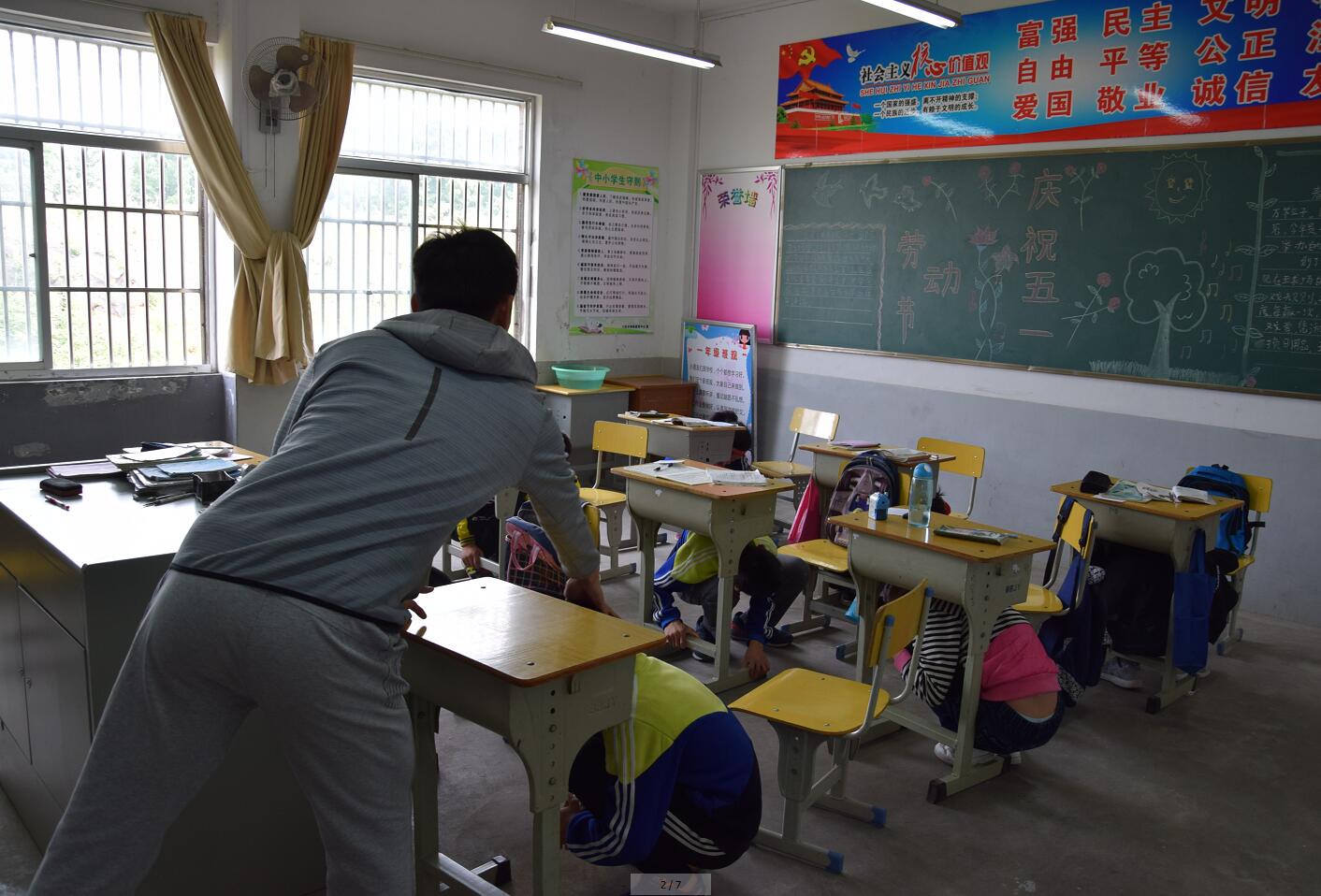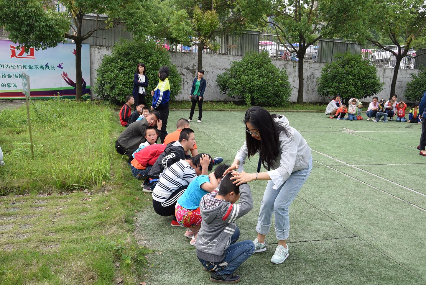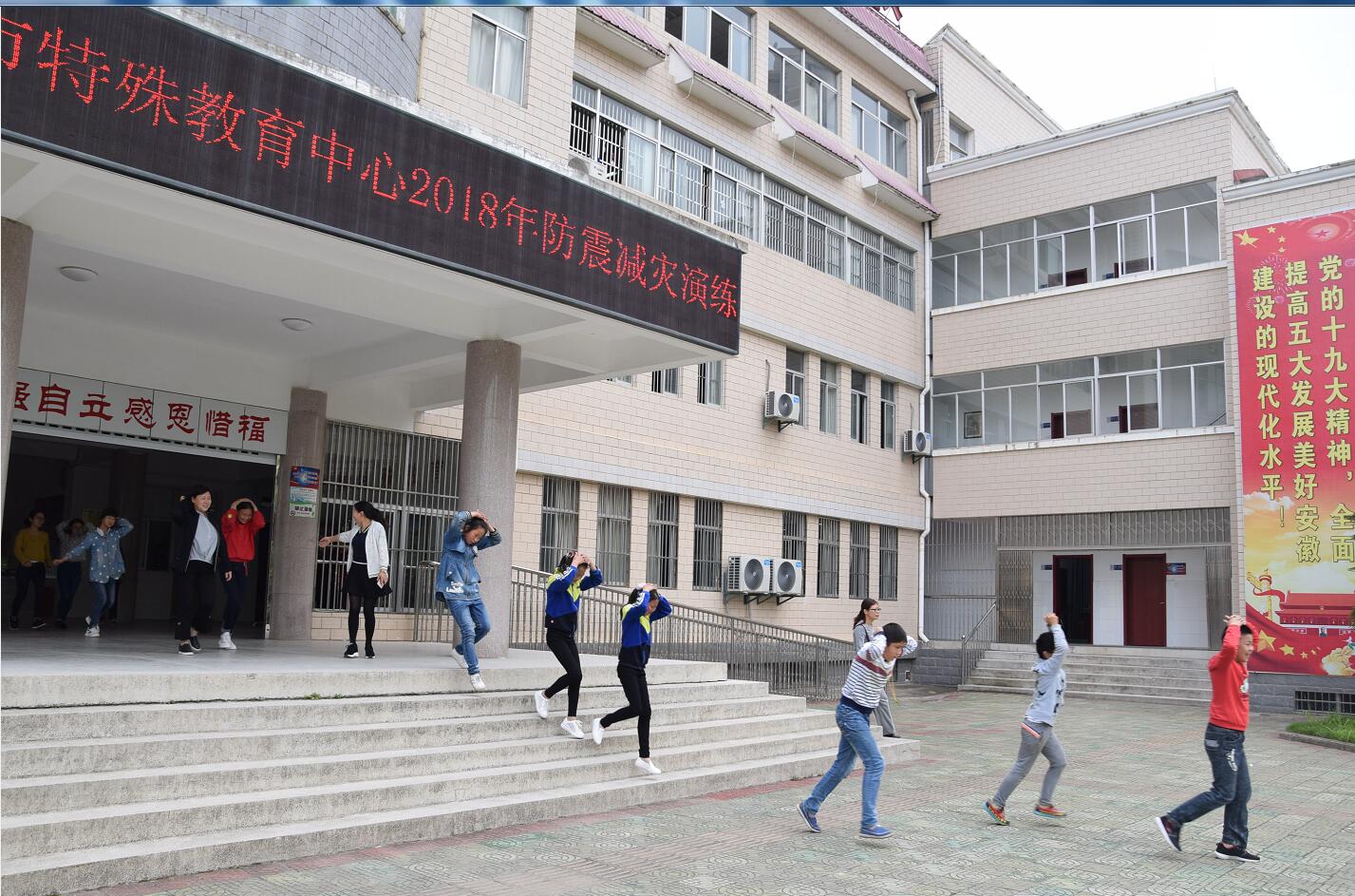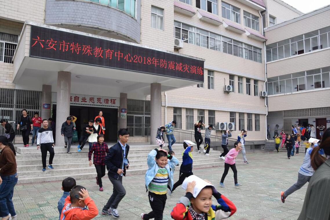 5月11日,根据校安全办拟定的《六安市特殊教育中心关于开展“5.12”地震演练的通知》(六特[2018]12号)要求,全校师生共同参与,集中进行了一次地震应急避险及逃生演练。上午8点45分警报声响起,全体学生进入演练第一阶段,室内避险。在各班主任和部分学生家长的指导下,学生们按照之前预定的步骤,有序地躲避到课桌下或墙角处。伴随着第二次警报声,学生们进行第二阶段的逃生演练,东、中、西各个方位教室的学生,按照预设好的逃生路线,有序下楼,逃生到指定的室外避险场地。教学楼每个楼层的主要位置,以及室外避险场地均有相应教师负责,确保学生在逃生过程中的秩序和安全。经计时测算,整场演练时间为2分48秒(其中逃生时间为1分36秒),演练活动取得满意效果。