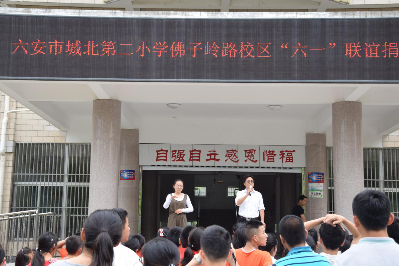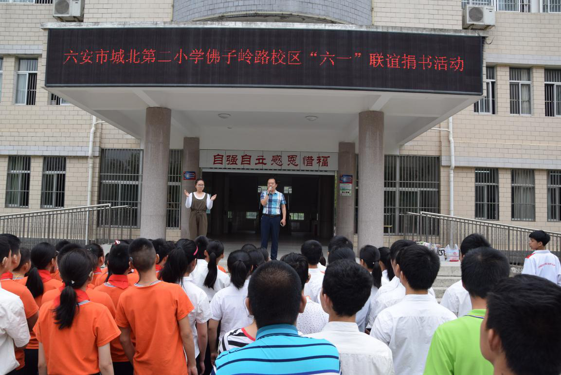伴着和煦的阳光,5月29日,六安市特殊教育中心迎来了一群新朋友——城北第二小学佛子岭路校区的同学们。他们在裕安区教育局督导室副主任万继胜、城北第二小学副校长、佛子岭路校区校长张琼、城北第二小学副校长吴晓光等领导的带领下,到我校开展“六一”联谊捐书活动。
