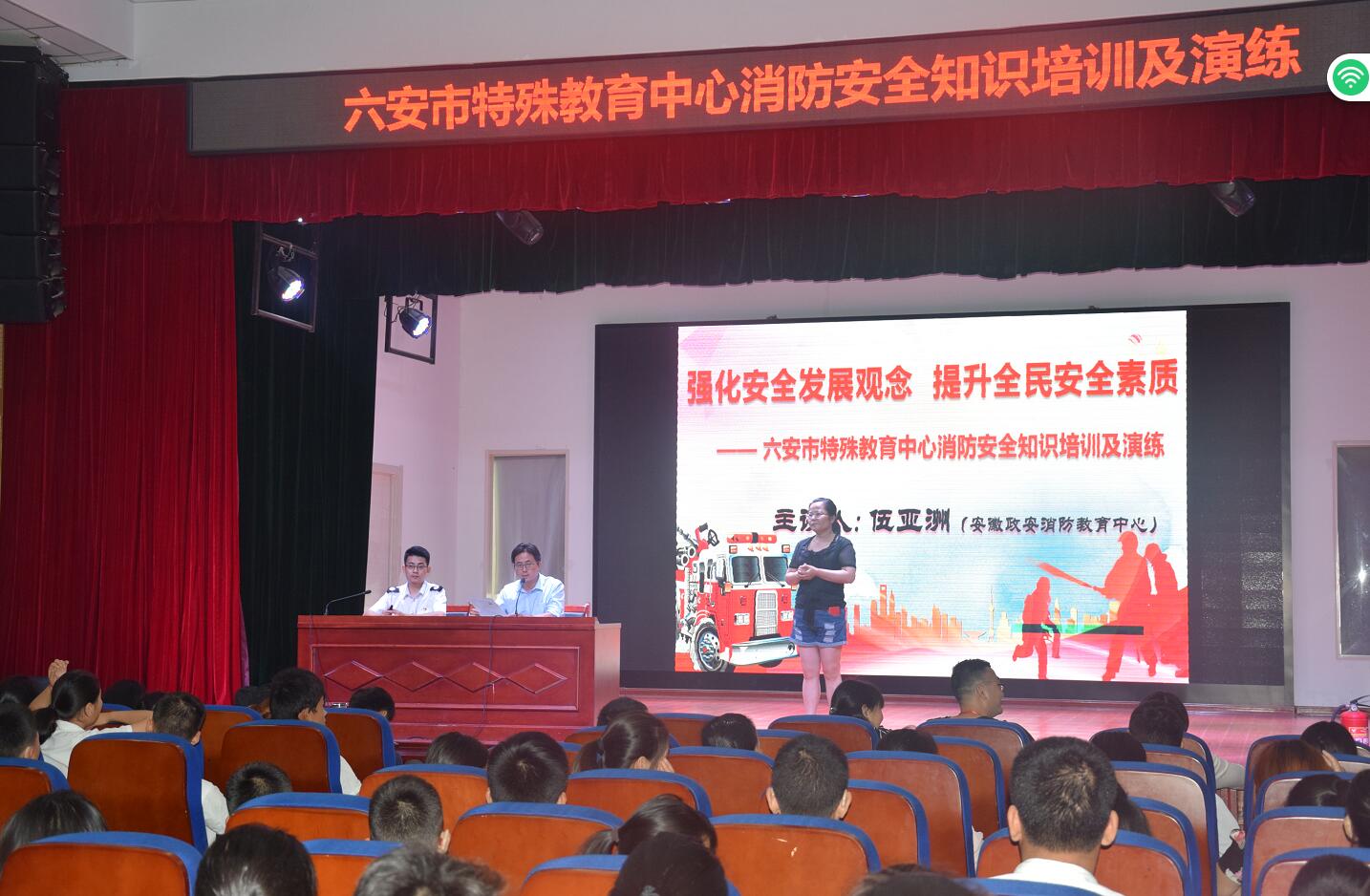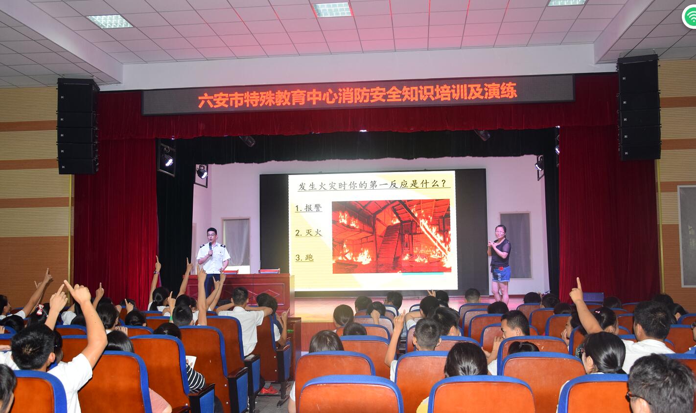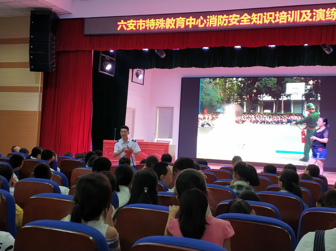 6月22日下午,六安市特殊教育中心开展以“强化安全发展观念 ,提升全民安全素质”为主题的消防安全知识培训及演练。所有师生准时参加了此次培训,并邀请了安徽政安防火教育中心伍亚洲教官进行授课。授课围绕着火灾发生的原因、火灾种类、灭火方法、逃生自救办法及消防设备的使用等内容,结合典型案例进行了生动的讲述。