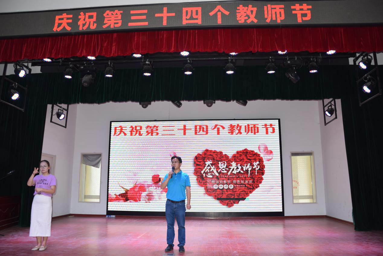 校长陈中芳发表教师节致辞,他感谢老师们辛勤的付出,号召全体教师做一个“有理想、有道德、有学识、有爱心”的“四有”好老师,在特殊的工作岗位上书写着不平凡的教育人生。他勉励孩子们要有共同的信仰,做一个尊师重教的学生。