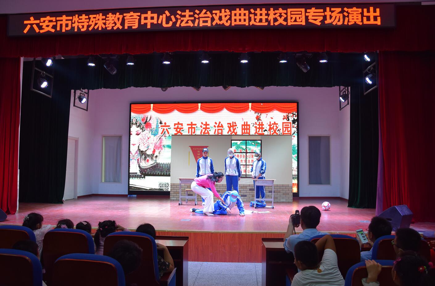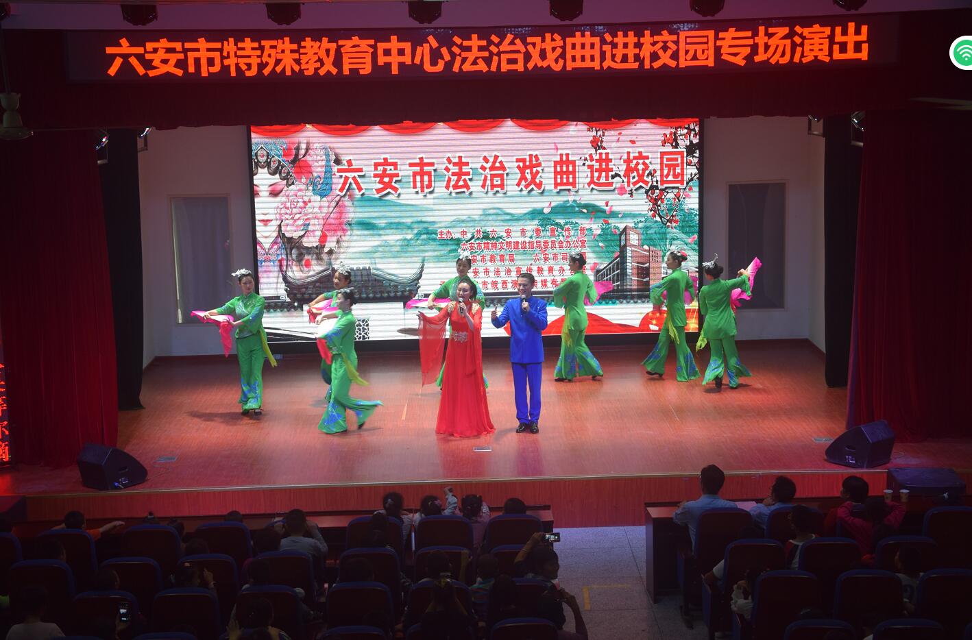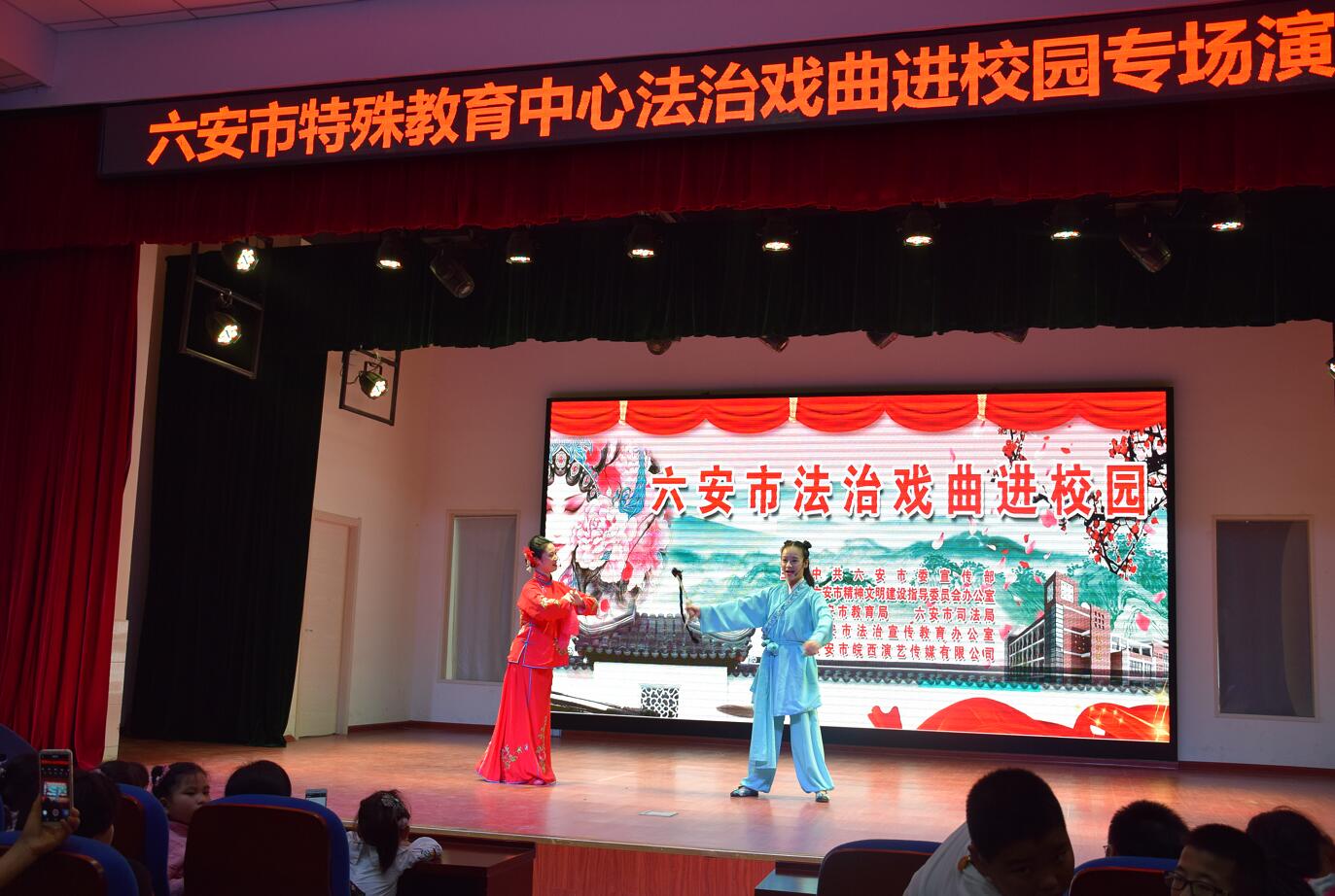 为切实增强学生的法制观念和自我保护意识,弘扬中华优秀艺术文化,依据六安市文明城市创建工作要求,由六安市市委宣传部、六安市精神文明创建指导委员会办公室、六安市教育局、六安市司法局及六安市法治宣传教育办公室主办,皖西演艺传媒有限公司承办的,六安市法治戏曲进校园专场演出,于9月18日走进六安市特殊教育中心。