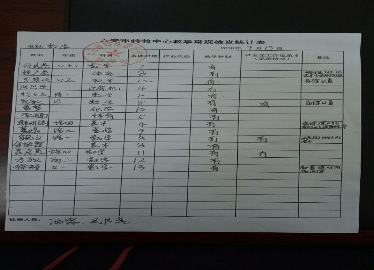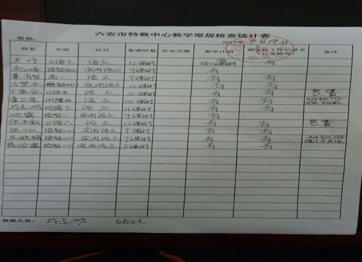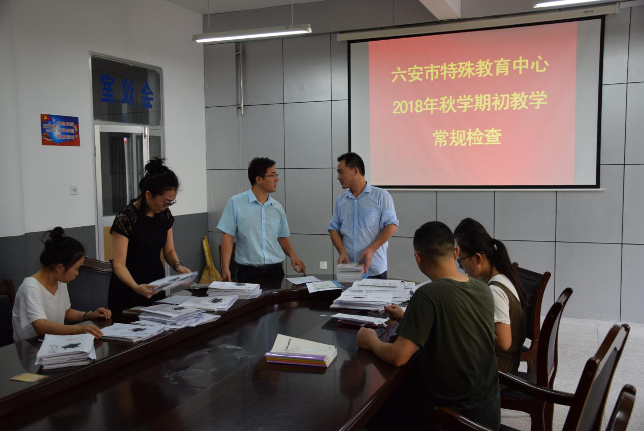 为了加强学校的教学管理,切实增强教师的教学业务水平,进一步提高学校的教育教学质量,9月19日下午,六安市特殊教育中心教务处组织各科教研组长以及部分教师,集中开展了2018年秋学期初教学常规检查工作。