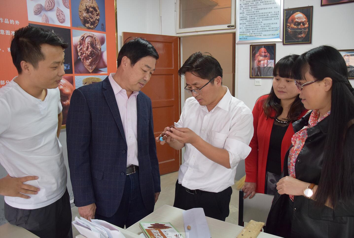 彭校长在陈中芳校长的引领下,参观了学校的校园文化建设和核雕技术培训、园林艺术培训等教育教学场所,详细了解学校的特色文化及教育教学工作。在核雕技术培训教室里,一件件核雕艺术作品细腻优雅,刀工清秀,技法纯熟,精细奇巧,人物神态表现得淋漓尽致。彭校长细细观赏核雕艺术品,赞不绝口。彭校长认为:核雕艺术博采传统文化精髓,既是对传统文化的继承,又进一步拓展了残疾孩子职业技能。