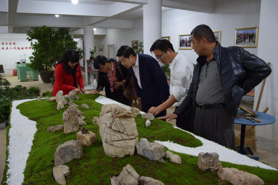 在砺志特教技能推广中心,彭校长观看了残疾学生们在园林艺术培训课上制作的水旱盆景。