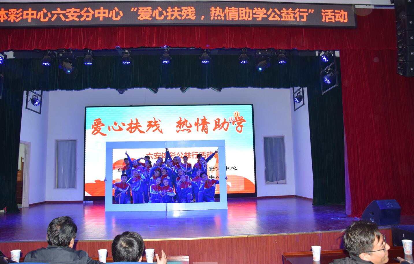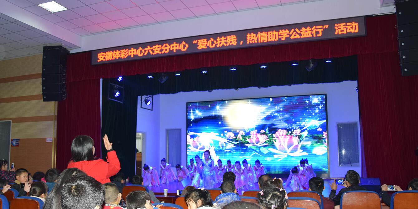 3日下午,六安市特殊教育中心的演播大厅里暖意融融,安徽体彩中心六安分中心代表团带着慰问品来看望我校的学生们。活动在我校学生表演的舞蹈中拉开帷幕。陈校长为本次活动致辞,对客人们的到来表示欢迎,并详细介绍了我校职业教育的成绩和现状。紧接着六安体彩中心的张家全主任也上台发表了热情洋溢的讲话。活动中,我校学生表演的舞蹈《夜空中最亮的星》、《我要飞翔》展示了孩子们的青春活力和积极阳光的面貌,赢得了现场爱心人士的一致好评。