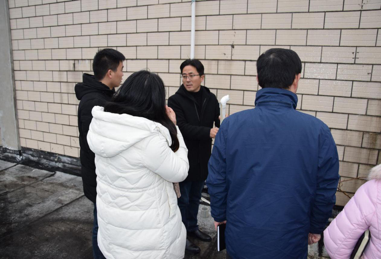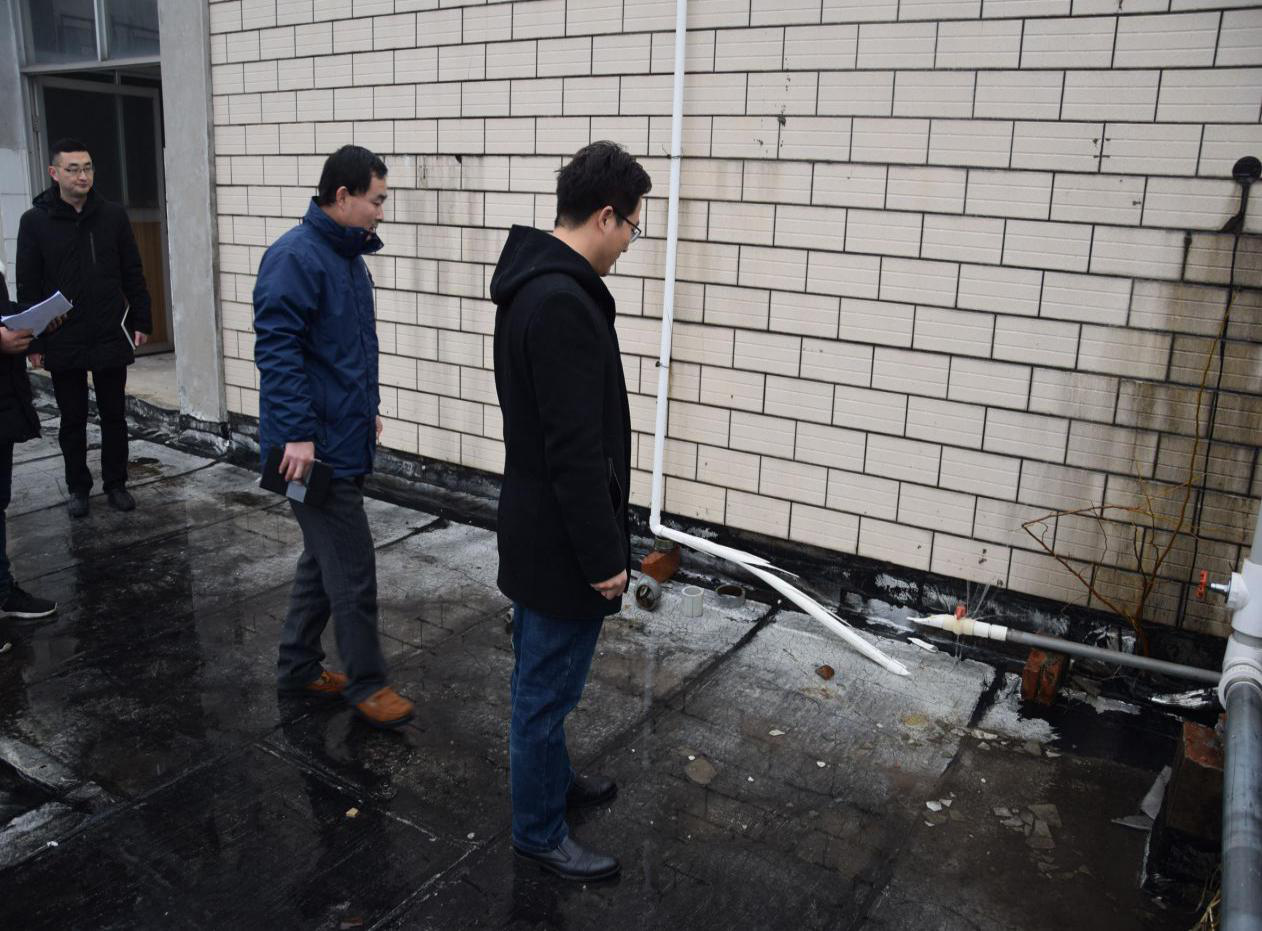 校长陈中芳带领领导班子成员分别对教学楼、生活楼、各类机房泵房、后勤仓库等处的用电安全和消防设施进行细致排查、登记,对发现的教学楼楼顶渗漏水问题,相关部门现场联系安排人员进行整改落实,及时消除隐患。