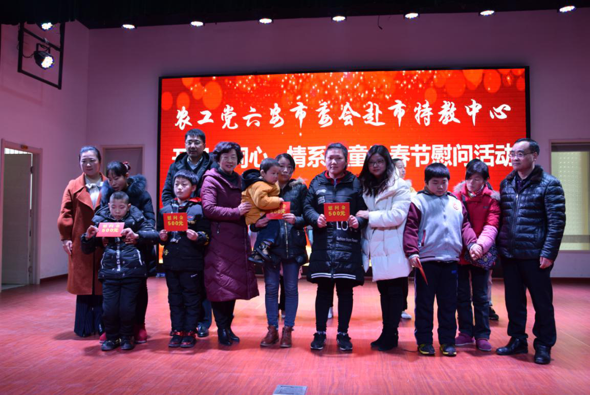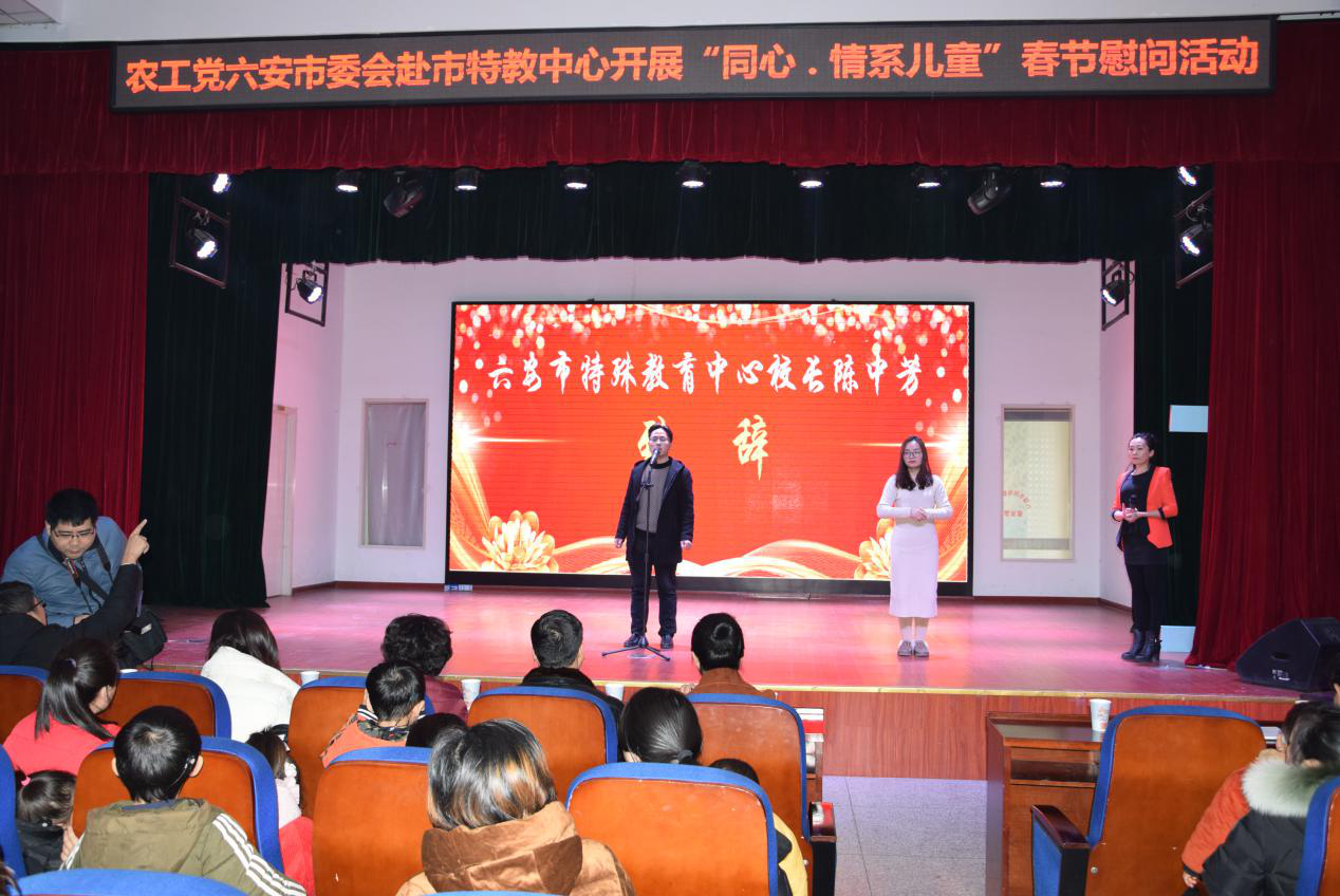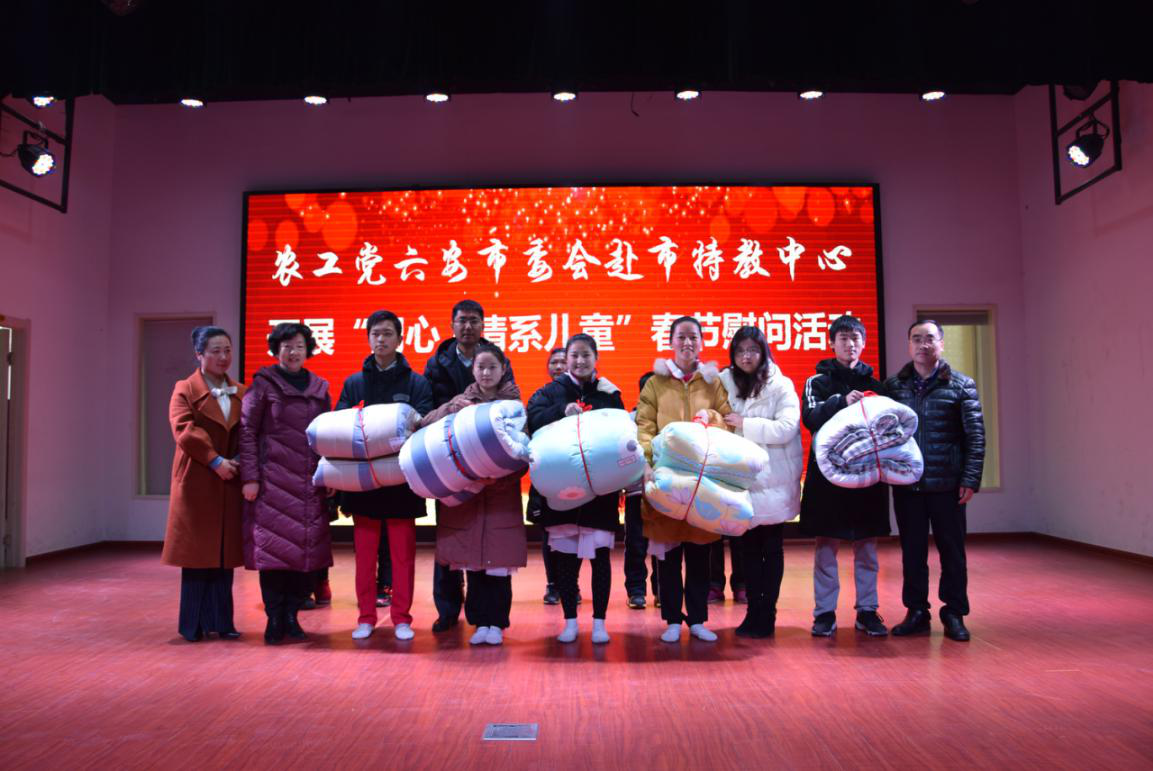 腊梅吐蕊,和风送暖。1月15日上午,农工党六安市委会专职副主委张烨一行来我校开展了“同心•情系儿童”春节慰问活动。陪同慰问的还有农工党六安市委会委员、社会服务部部长张书云,农工党中医院支部副主委束永兵,农工党办公室主任贾小舟,农工党办公室主任闻娟,农工党党员门伍龙和农工党党员赵光华。