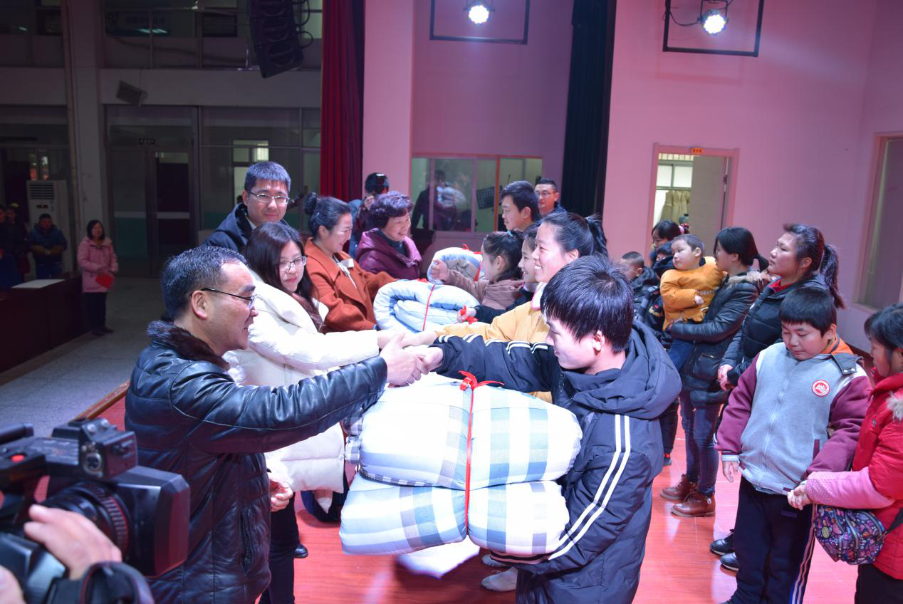 活动第三项,捐赠仪式正式开始。农工党六安市委会的各位领导和党员向我校31名住宿生每人捐赠新疆棉被1床,还向5名特困残疾儿童每人捐助了500元现金。此次捐助总金额达10000元。