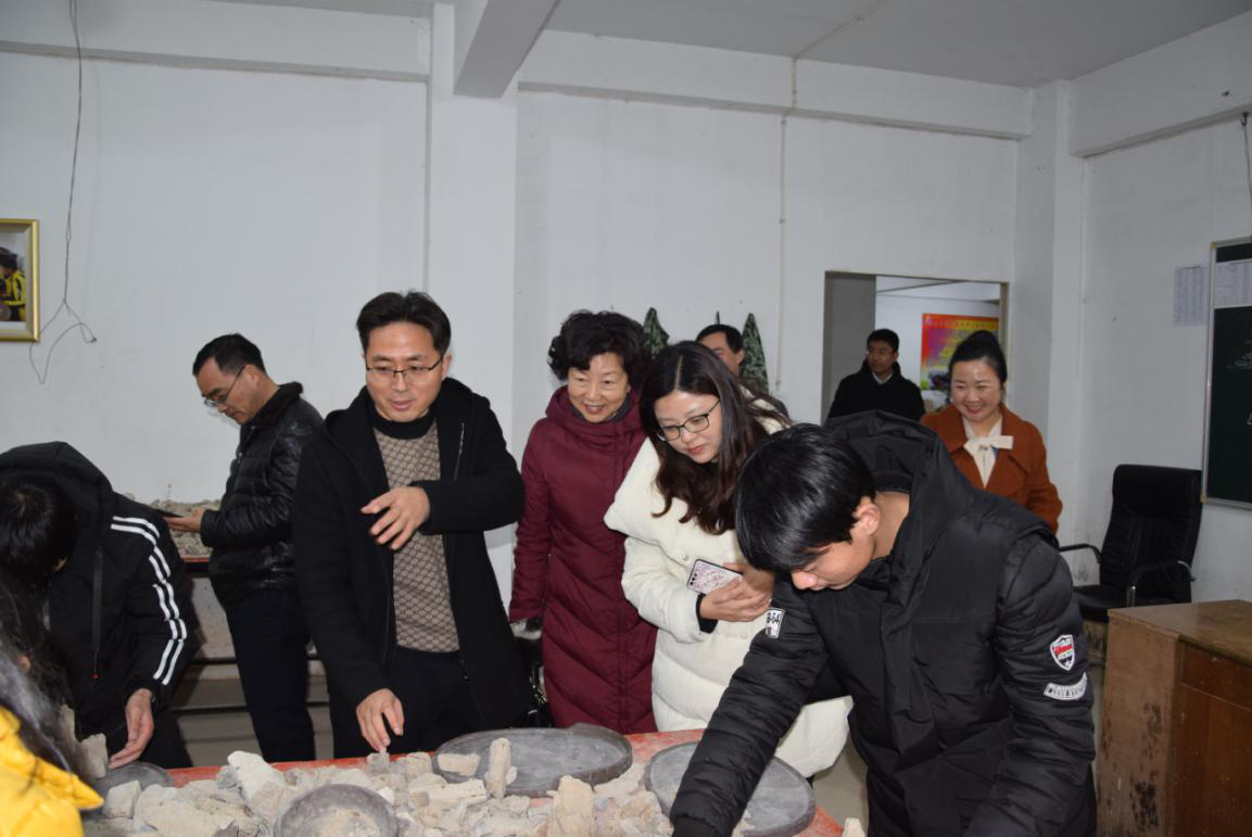 捐助活动结束后,陈中芳校长带领张主委一行参观了我校正在开展的特色化职业教育课程:核雕和园林绿化。张主委分别看望了正在上课的各位学生,详细了解了关于核雕雕刻训练方法、水旱盆景制作流程等情况,对学生们专注技能学习、刻苦训练的精神表示充分肯定与赞扬。当得知目前课堂中积累了较多的核雕和盆景成品时,张主委表示,将广泛调动农工党的人脉资源,积极拓宽产品的电商平台销售渠道,使孩子们的成果能真正得到社会的认可,实现价值。