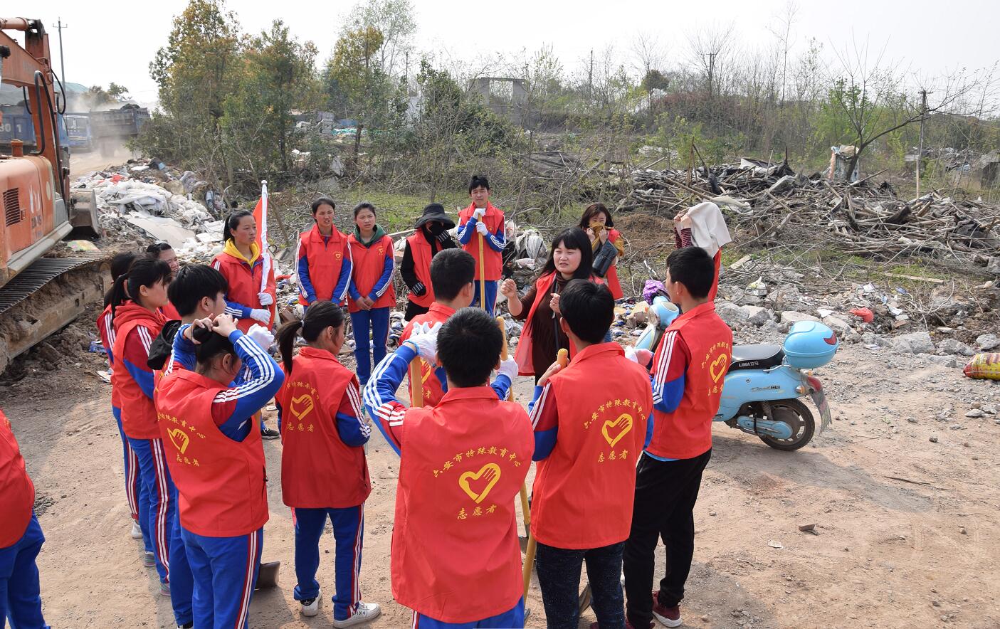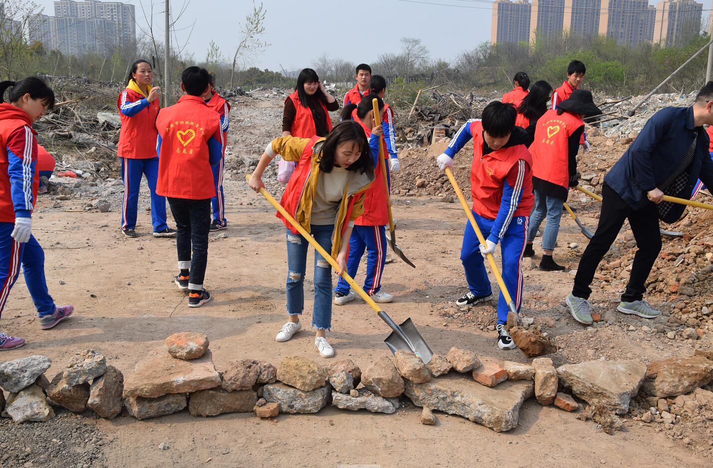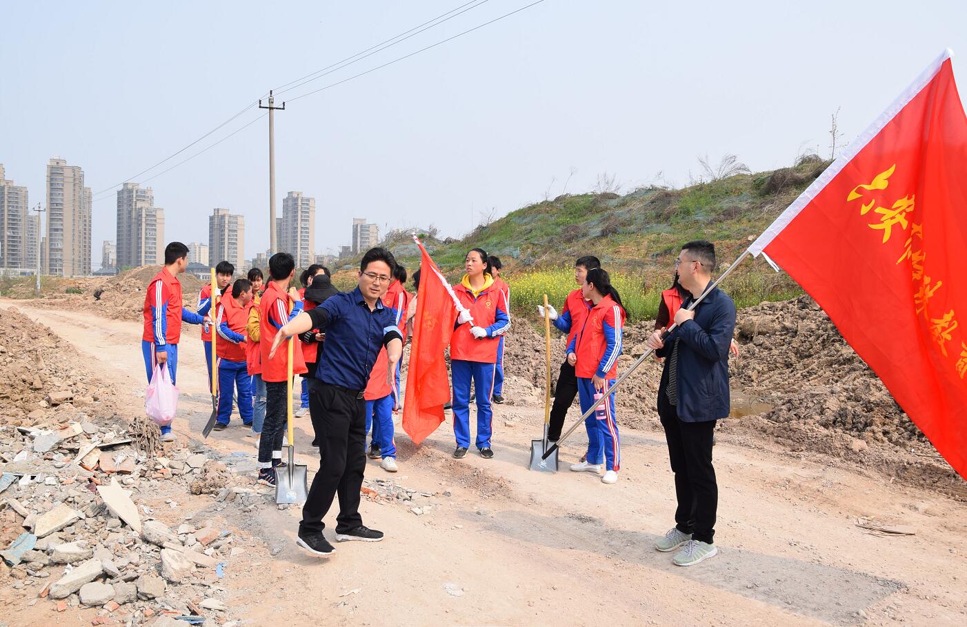 学生们在教师的带领下,带着劳动工具来到新校址。一到现场,他们便热火朝天的干了起来,捡垃圾、清理渣土,用石块和渣土垒起一道屏障,禁止不明车辆倾倒垃圾。同学们争先恐后,热火朝天,发扬不怕苦、不怕累、不怕脏的雷锋精神。活动中,学校团委何良燕书记还在现场给同学们介绍了新校区的占地范围和建筑规划,同学们满怀希望、憧憬美丽新校园能尽快建成。