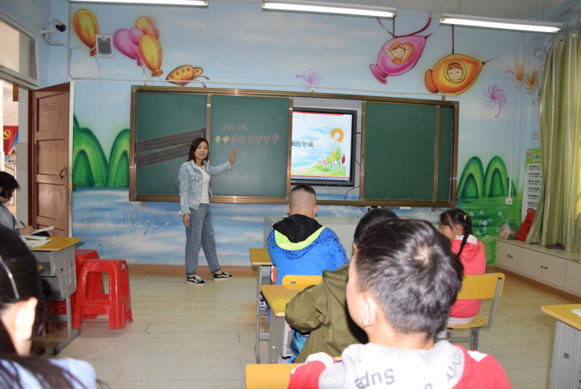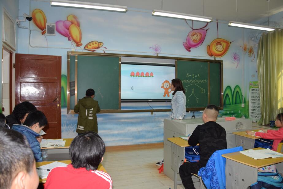 台冉老师通过学生喜闻乐见的插花和小猴子摘苹果、小猫钓鱼等实物或图片,激发培智学生学习新课兴趣。课堂中,台冉老师还利用数小棒的方法,来提高学生动手动脑能力,从而促使学生掌握8的分成——3和5。