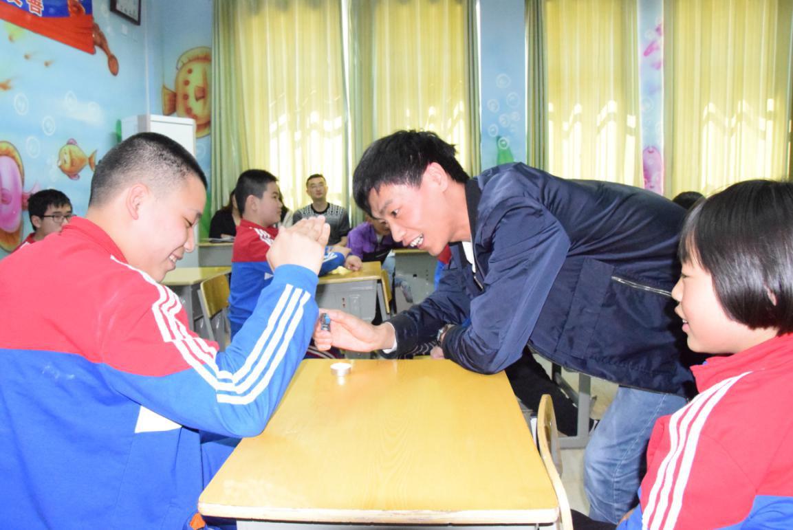 4月17日上午第三节课,蒋治富老师在培智二(1)班上了一堂生动有趣的生活课——《火和电》。