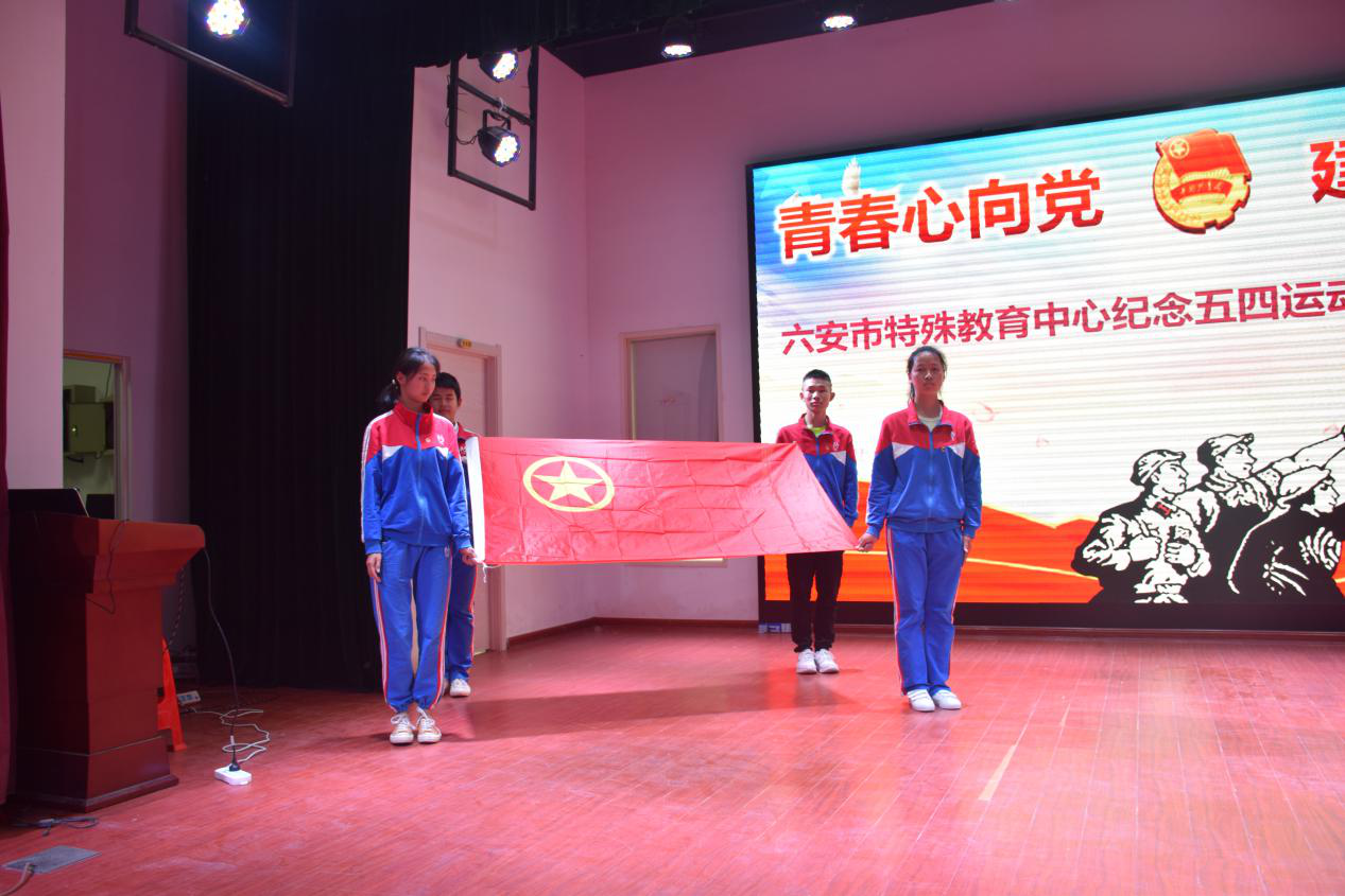 今年“五四”青年节,恰逢五四运动 100 周年,在这一天,六安市特殊教育中心举行新团员入团仪式,组织团员青年度过一个难忘的“五四”青年节,并借此机会加强学生的爱国主义教育。在庄严、耀眼的团旗前,6位学生庄严宣誓,他们中有失聪的聋儿,也有智力不健全的培智学生,但是,今天,他们像健全学生一样光荣地加入了共青团这个青年先进组织,成为同学中的先进分子。