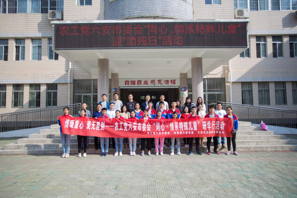 全国助残日来临前夕,5月11日(星期六),农工党六安市委会专职副主委张烨带领市直二支部部分党员开展“同心·情系特殊儿童”迎“助残日”助学活动走进我校,此活动主题为“情暖童心·爱无差别”,共青团六安市委、六安市志愿服务联合会有关人员共同参加了此次活动。