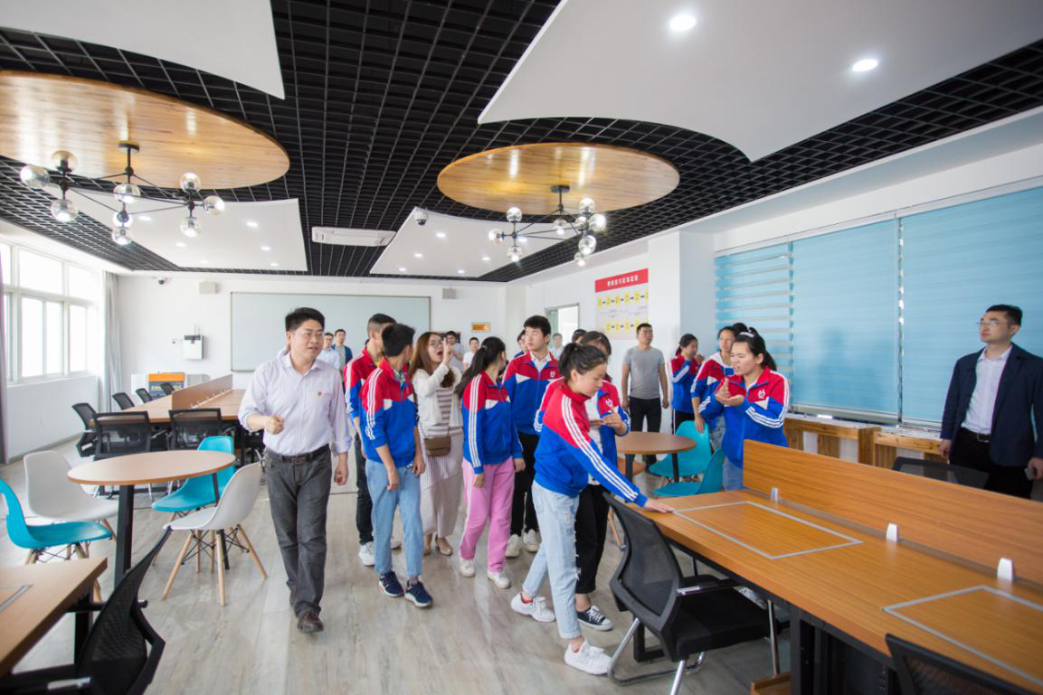 学校陈中芳校长向来校的农工党各位领导与党员详细介绍了职业教育专业开设与学生学习情况,农工党六安市委会张烨副主委在了解了特教孩子对自己所学的专业前景还存在一些困惑后,十分重视,为了进一步开拓职业高中部学生视野,结合学生学习需求开展了一系列助学研学活动,张烨副主委高度关心下,由农工党市直二支部部分党员带领下,我校职高班15名听障学生首先来到安徽国防科技职业学院经贸管理学院,跟随杨力院长的引导,同学们先后参观了微创中心、摄影录音棚等电商专业模拟实践场所;在得知我校学生对电子商务专业十分有兴趣时,杨院长特意安排学院专业老师对孩子们进行培训。