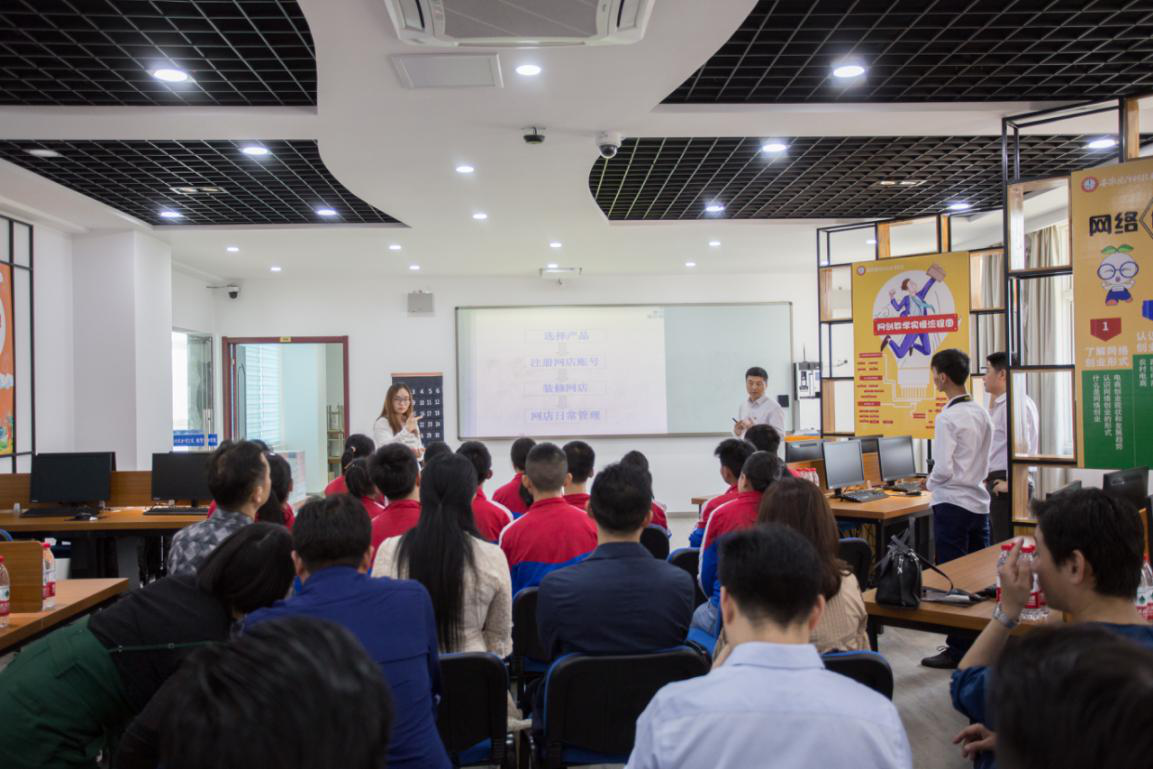 同学们在享受了农工党六安市委会市直二支部部分党员精心准备的午餐后,下午前往六安市星宇网络科技有限公司进行参观与学习,在公司里同学们对阿里巴巴文化、国际贸易站的工作流程及电商平台的运用有了进一步的了解,并和公司里的工作人员进行亲切的互动,每个同学将自己美好的心愿书写在卡片中,悬挂在公司企业文化墙上。