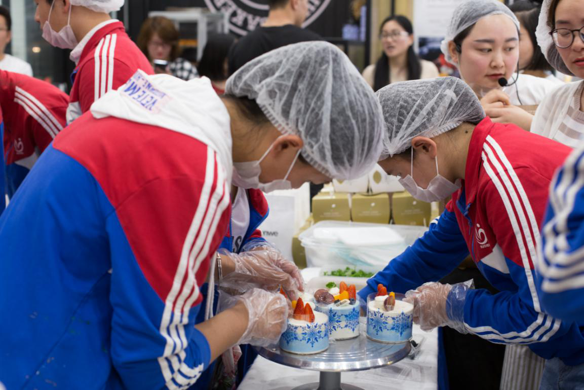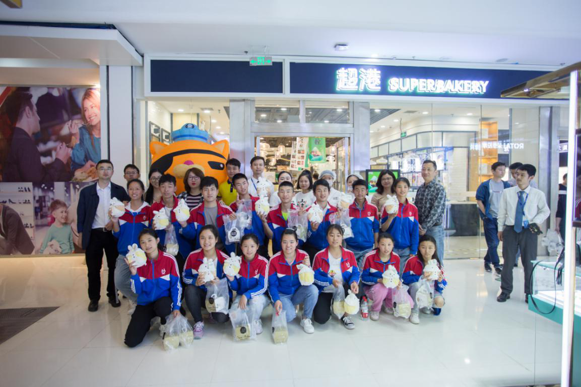 助学研学活动第二站,来到了万达“超港”蛋糕店。在店长的亲切指引下同学们深入到蛋糕店操作间观看了面包制作的整个流程,并在糕点师傅的指导下,亲自动手亲自制作,体验制作各式各样的糕点。