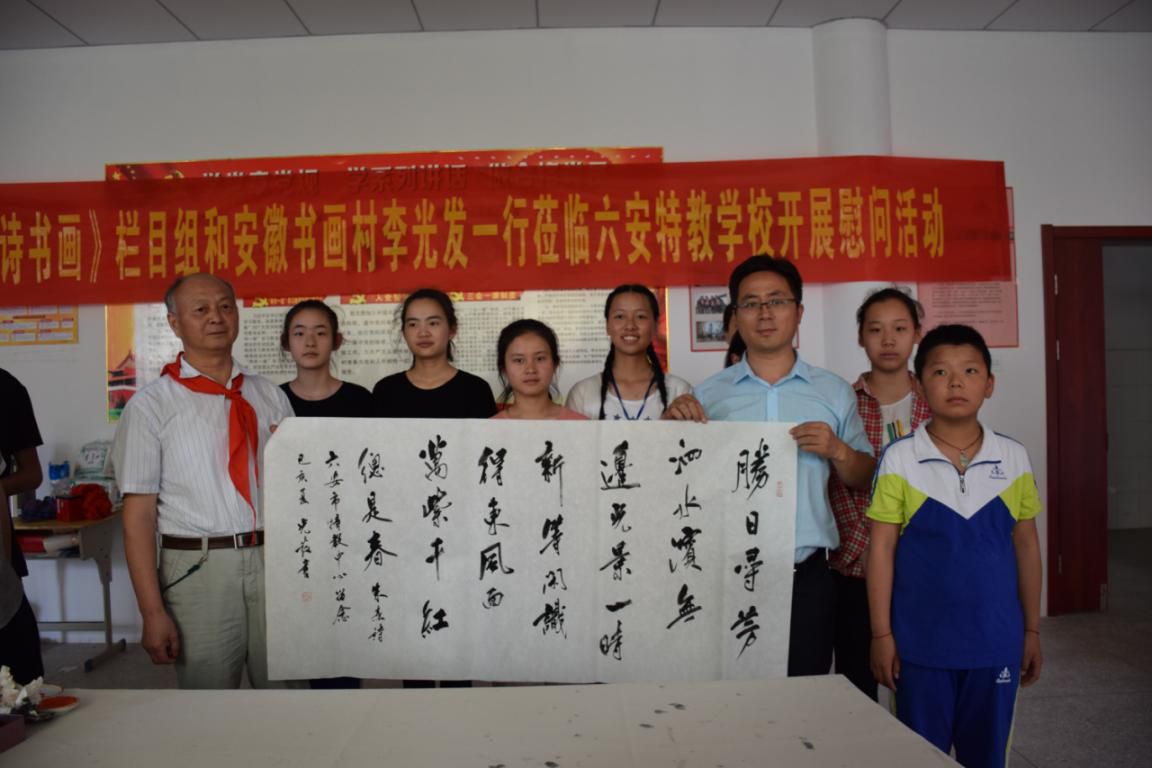 为进一步提升师生对书画作品的鉴赏水平,激发学生对学习书法绘画的兴趣,6月6日下午,安徽卫视《我爱诗书画》栏目组和中国书法协会会员李光发一行来到六安市特殊教育中心开展书画交流慰问活动。