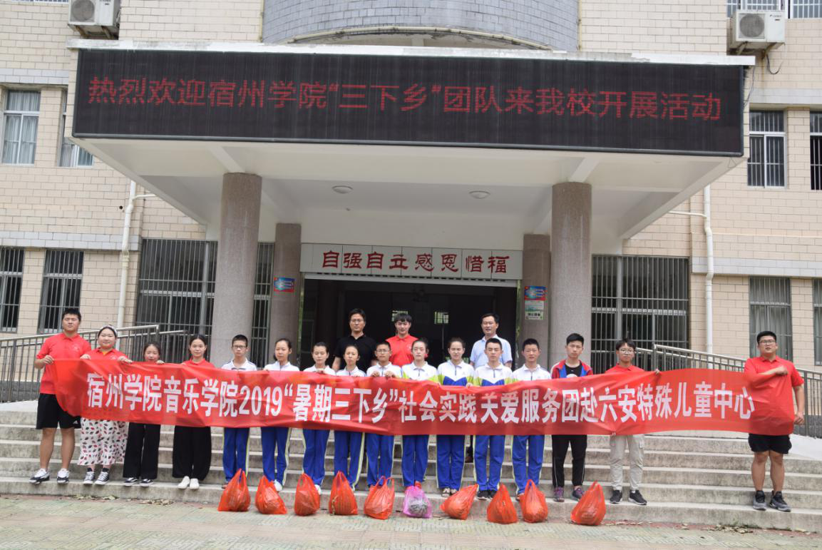 7月8日,宿州学院音乐学院2019“暑期“三下乡”关爱特殊儿童服务团来到六安特殊教育中心,开展了以“关爱特殊儿童,我们携手前行”为主题的关爱特殊儿童活动。