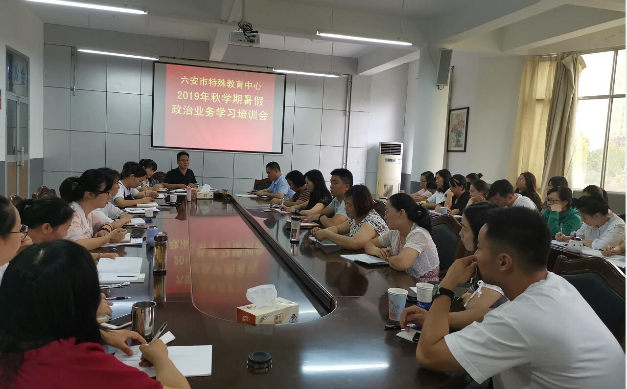 8月26日,六安市特殊教育中心召开2019年秋学期暑假政治业务学习培训会。