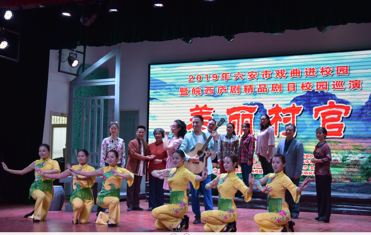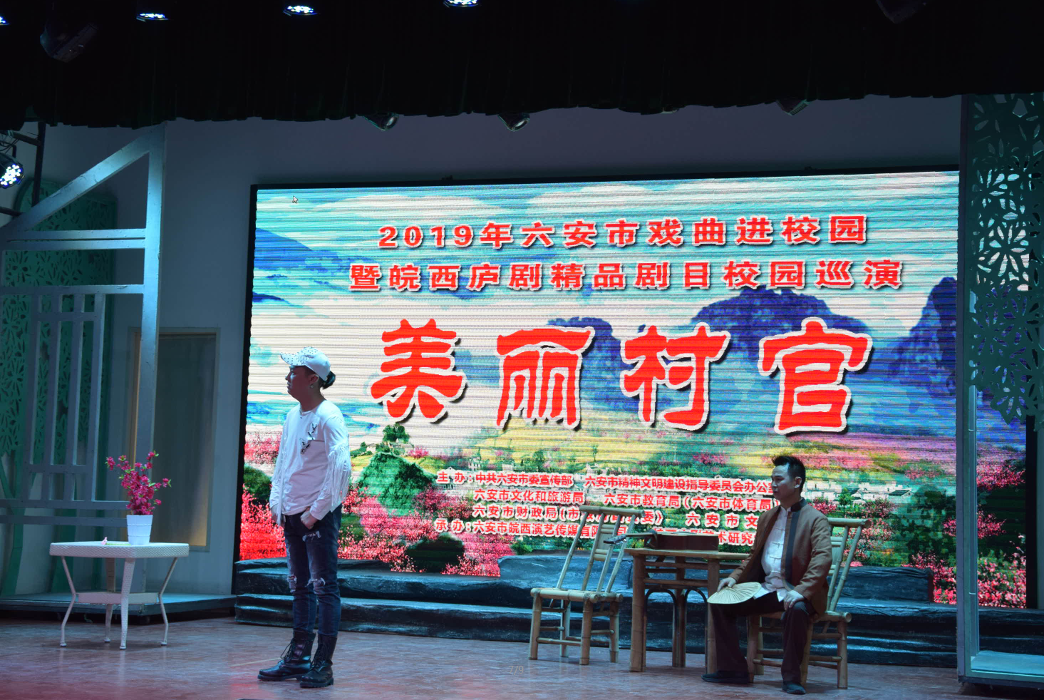 本场校园巡演活动的主要戏曲节目:皖西庐剧精品剧目《美丽村官》,主要讲述大学生方丹通过选拔考试当选桂花村村官,与青年歌手大鹏携手,出谋划策,统筹规划,助力脱贫攻坚,带领全村村民致富的故事。《美丽村官》将当今脱贫攻坚的故事以传统的戏曲艺术形式呈现在学生面前,让戏曲艺术等优秀传统文化陪伴中小学生们快乐、健康成长。舞台、道具、服饰、语言等无不展现出皖西地方特色和皖西文化的深厚底蕴、独特魅力。