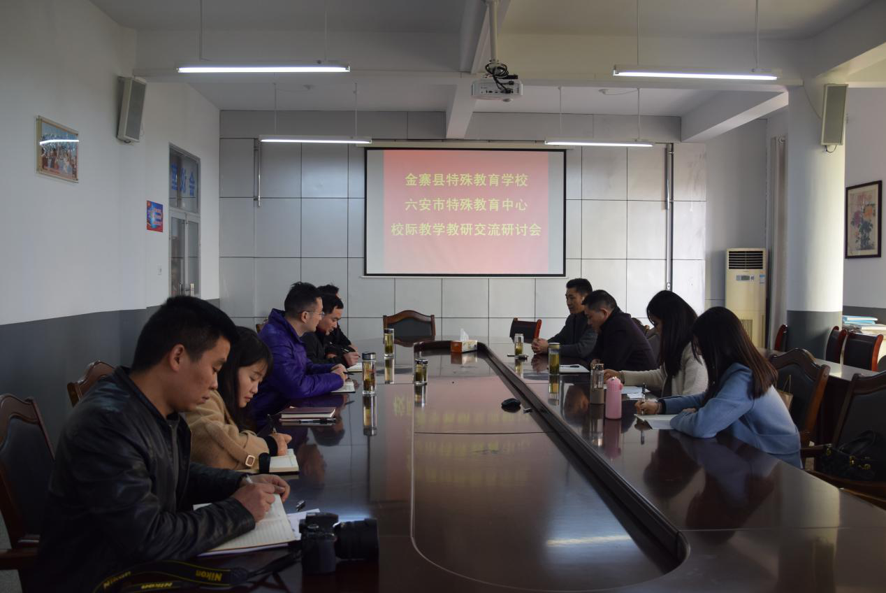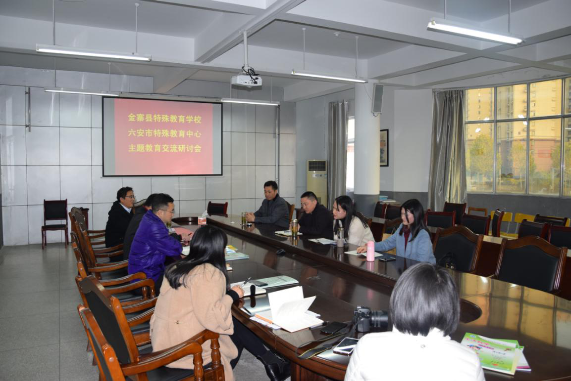 11月19日下午,金寨县特殊教育学校校长林志超带领学校班子成员和骨干教师一行4人到六安市特殊教育中心就两校间将开展校际教学教研交流活动事宜举行前期商谈。