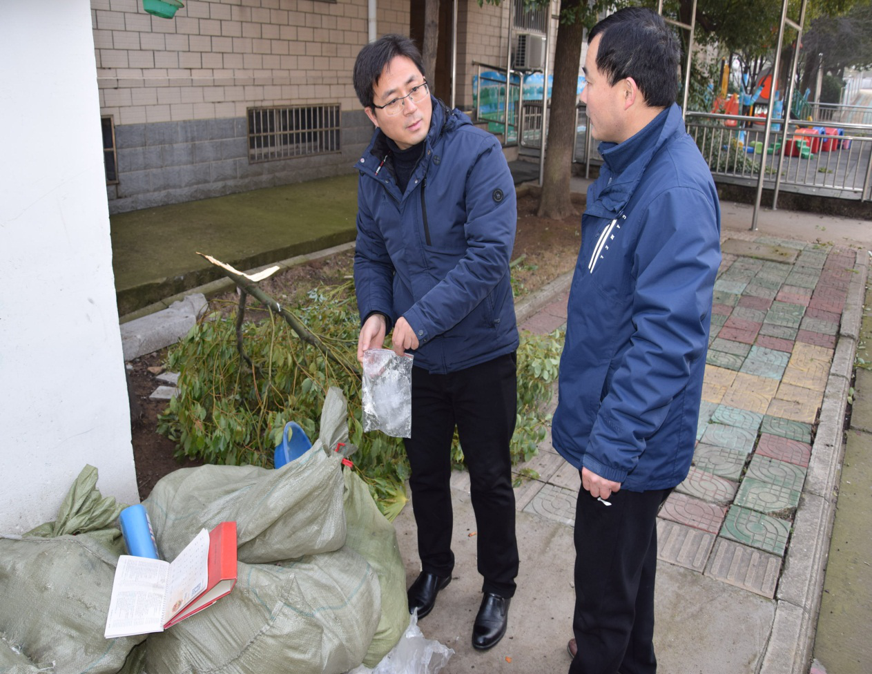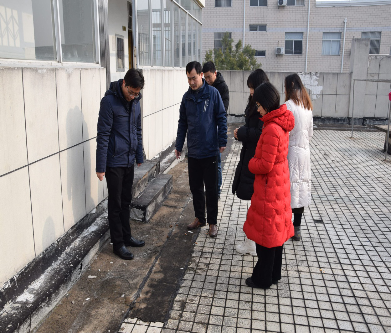 随后,校长陈中芳带领安全检查小组逐一对教学用房、学生宿舍、食堂食品卫生、围墙、户外设施、用水用电设备、体育器械、消防设备、校园周边环境等进行全面隐患排查,对排查中发现的屋顶漏水、线管脱落、排水管道损坏、垃圾处理不及时等问题,明确整改职责,落实相关负责人,当场联系维修处理,确保寒假春节期间校园安全。